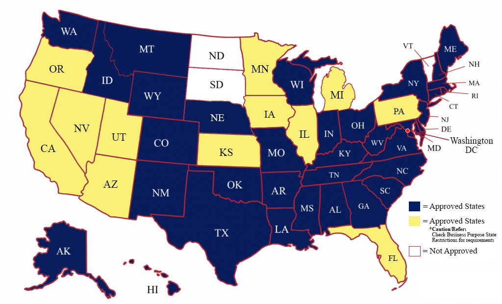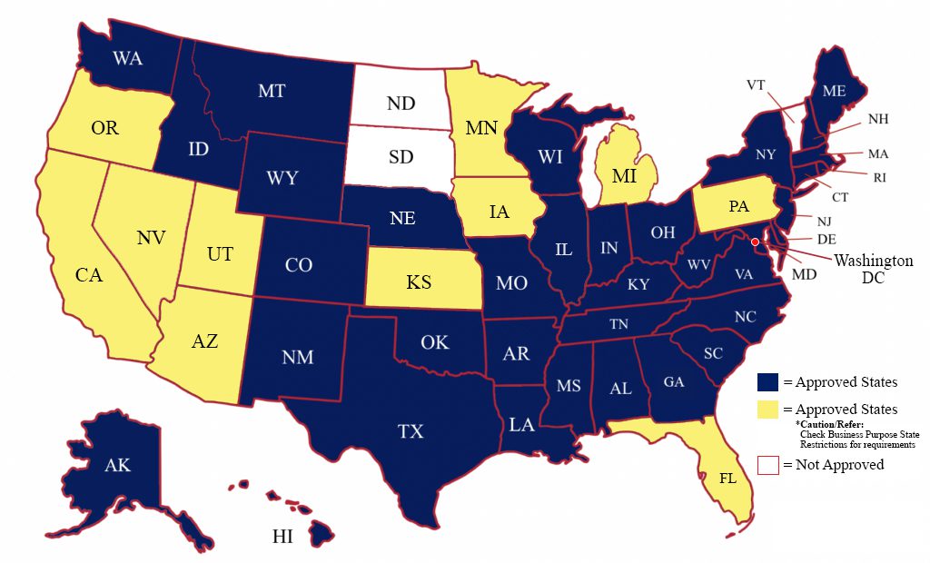 BUSINESS PURPOSE LOANS MAP